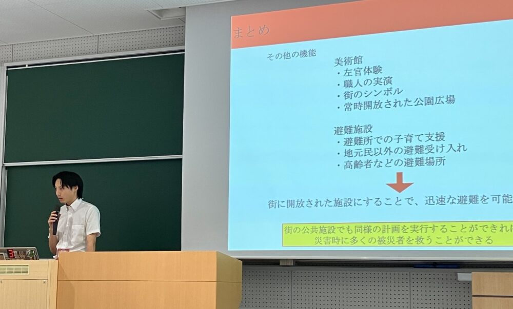 今回の建築学会大会では、当社の建設設計部所属の社員が「災害時に防災拠点へ変容する技術伝承美術館 -左官職人挾土秀平の思いと技術を未来へ- 」というテーマで研究発表を行いました。
