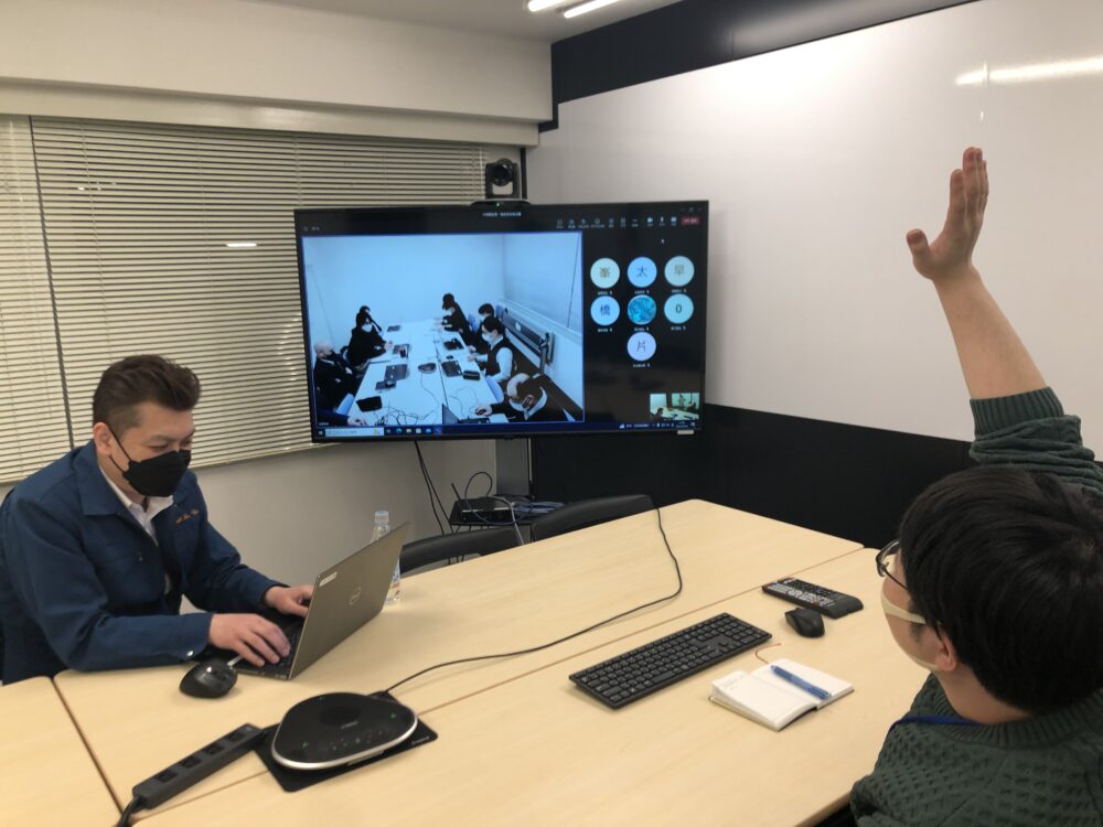 静岡事務所と東京事務所をリモート接続し、話し合いスタート。